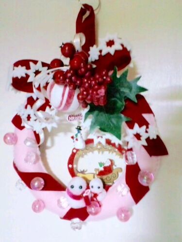 今は、材料が100均で大体揃うから、意外と安く作れるリース。私の作るリースは、ほとんど20×20センチのフエルト2枚をドーナツ状に切り、綿を詰めて縫い合わせて作ってから、その土台に色々縫い付けていきます。先ずはドーナツ台をたくさん、緑以外も楽しめる…